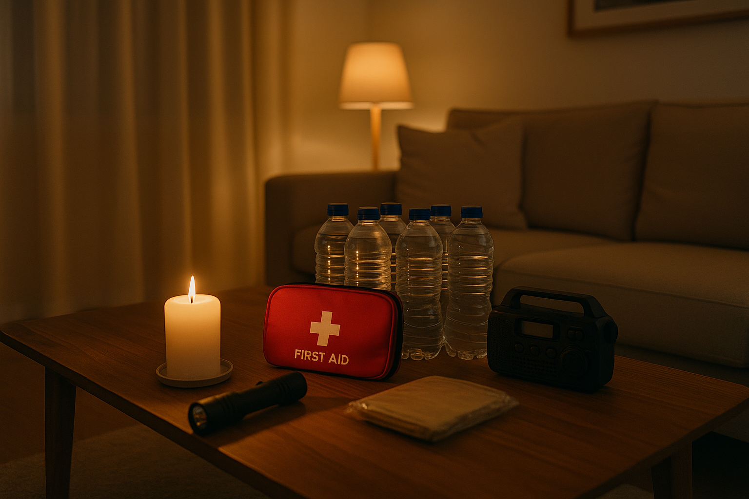 Zaklamp, kaarsen en batterijen